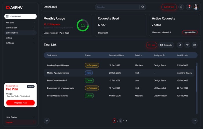 Submit requests, track progress, and get high-quality creative work delivered without managing a team.